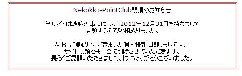 Nekokko Point Clubが予告通り閉鎖。