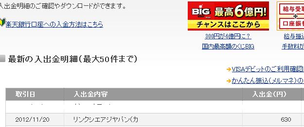 楽天銀行から報酬をいただきました。