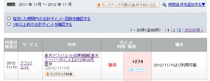 ってことで楽天のアフィリエイトの成果もあがりやすいんでしょうねぇ。自分はほとんど何もしていないのに少しずつ増えていっています。
