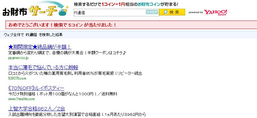 お財布.comのお財布サーチで久しぶりに5コインゲット♪