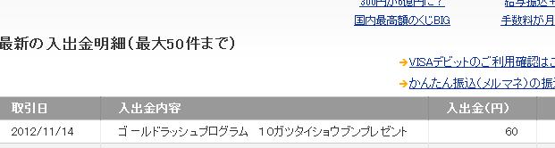 楽天銀行のゴールドラッシュプログラムからの報酬をいただきました。