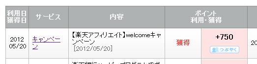 楽天アフィリエイトのwelcomeキャンペーンから報酬をいただきました。