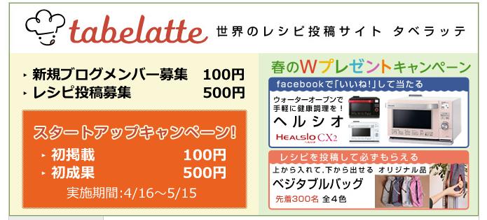 レシピサイトのようですね。料理好きの方なら自分でタベラッテ(tabelatte)に参加したらさらに報酬がもらえてしまいます♪