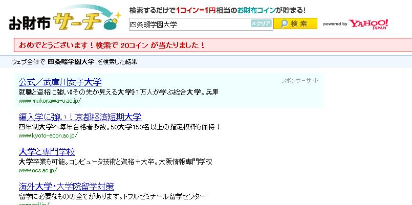 自分はインターネット検索をする場合はまずはお財布サーチを利用するようにしています。で、コインが当たれば他のサイトを利用するってな感じ。