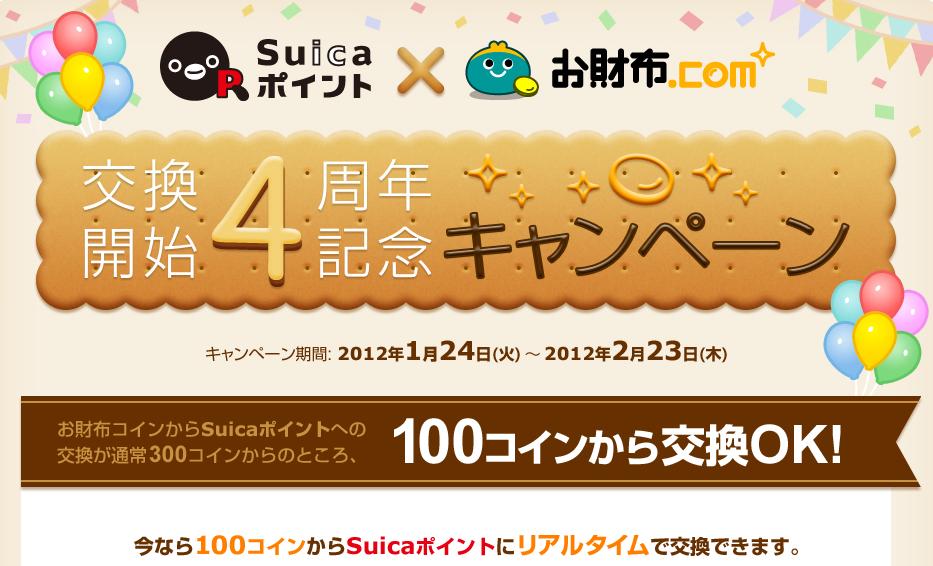 お財布.com、suicaポイント交換4周年キャンペーン