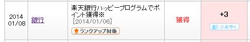 楽天銀行からハッピープログラムのポイントをいただきました。