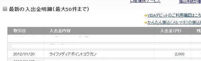 2012年の初報酬はライフメディアからでした♪ライフメディアから報酬をもらうのも初です。