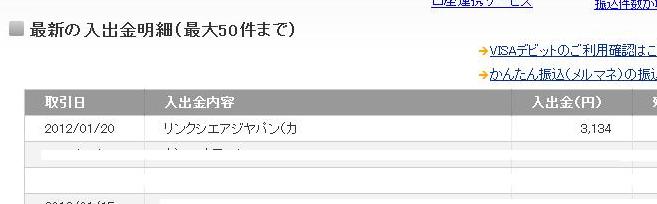 今月3件目の報酬振り込みはリンクシェアからでした♪